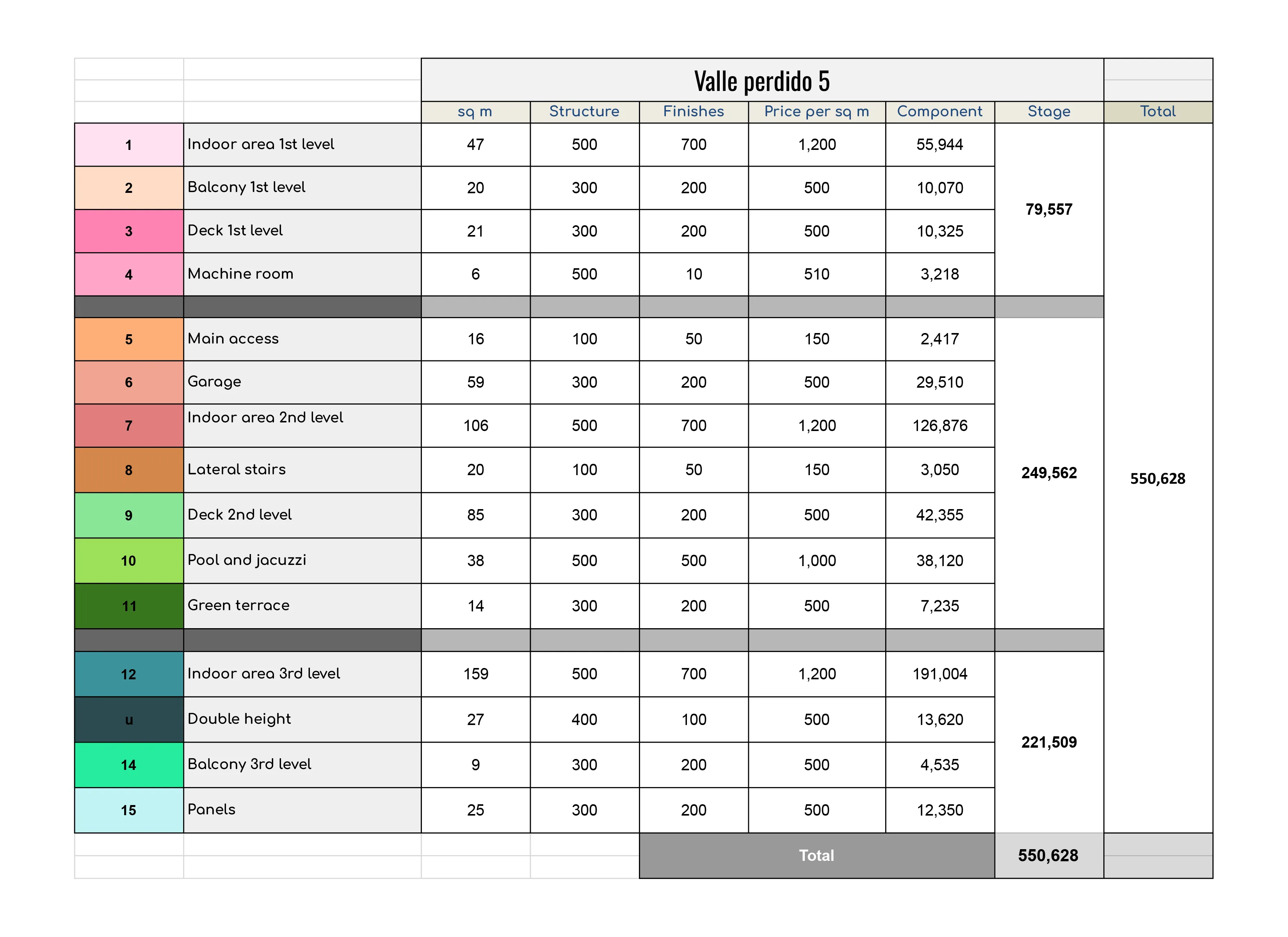 A budget is assigned to the gray work and the finishes of each component of the construction, which allows us to generate a budget close to the project according to the statistical values of the last project built.