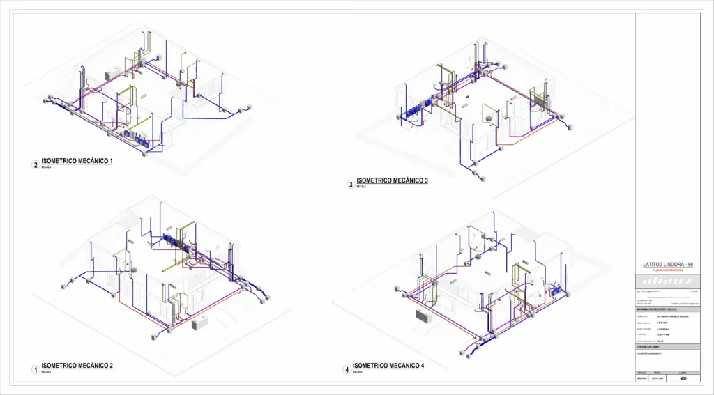 The project considers all construction variables. Any changes, recommendations, priorities, or hierarchy adjustments are resolved in 3D to create a design that integrates construction parts while respecting the approved architectural design. Any recommendations made during the process are incorporated into the final sheets.