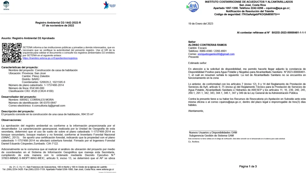 The architectural design service does not contemplate the guarantee of obtaining a building permit due to factors external to our service, such as registry, environmental, water availability, or other situations beyond our professional control.