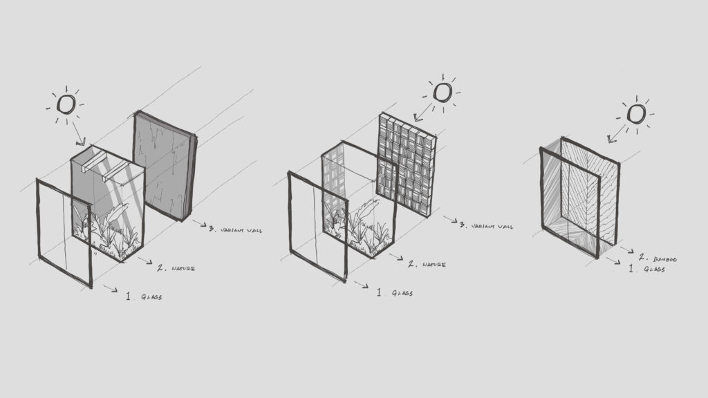 In Breeze House, the concept is understood through small situations, a corridor that becomes a filtered garden, a screen that allows seeing without exposure, an interior that breathes because light enters softened, a shadow that becomes texture over a mineral wall, an opening that is not a “hole”, but a directed gaze.