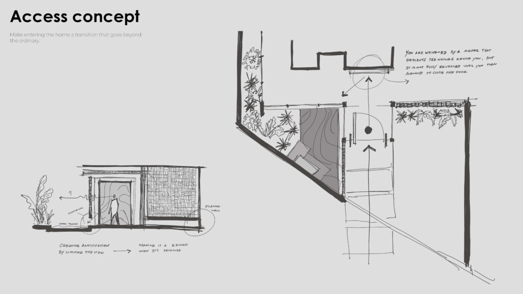 In Breeze House, the entry is designed as a transition that goes beyond the ordinary. This means arrival is not only logistical, it is emotional. Architecture decides when to compress space, when to darken it, when to let the body feel the coolness, when to let the ear hear water or wind, when to reveal the first gesture of the landscape.