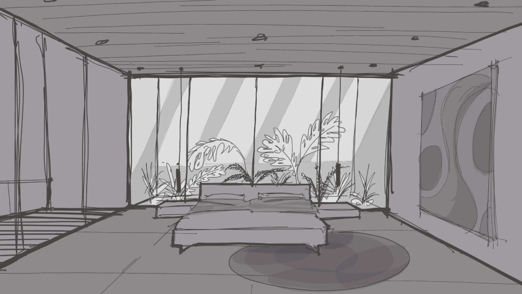 In Breeze House, the first drawings work as an exploration of proportions, sections, shadows, and sequences. The sketch does something essential, it allows the project’s character to appear before the final form is decided. Before speaking of façade, depth emerges, before speaking of luxury, silence appears.