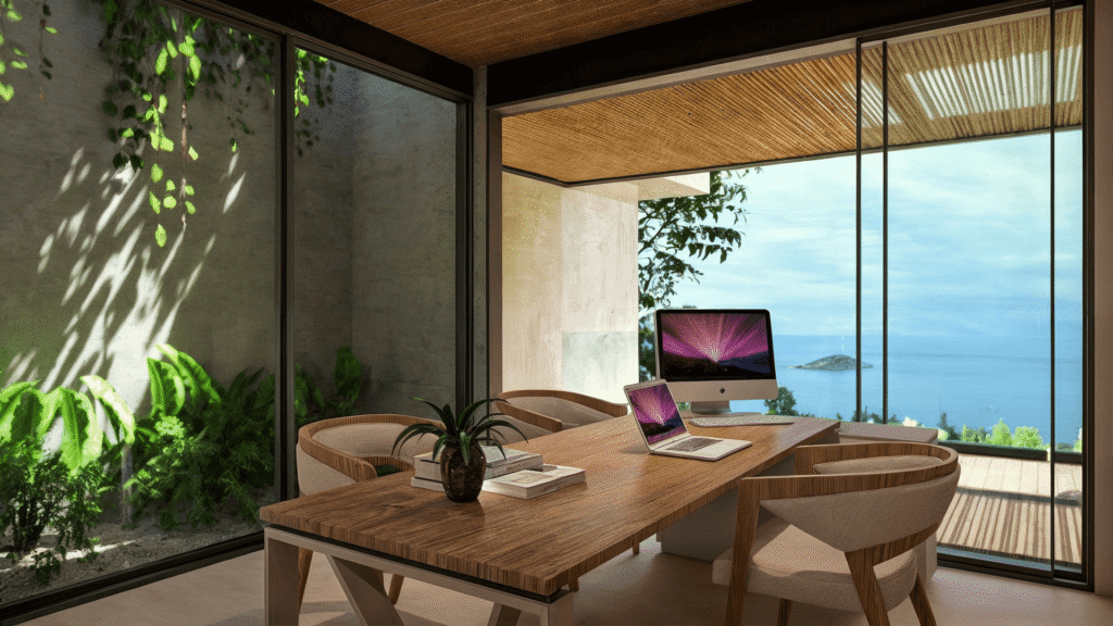 In Breeze House, the ocean view receives the importance it deserves, it is framed and the horizon is emphasized. The frame is not just any window, it is a decision of scale and silence. A strong framing makes the exterior shine more, because the interior lowers its volume, creates shade, creates depth, and then the landscape becomes a crisp scene, almost cinematic.