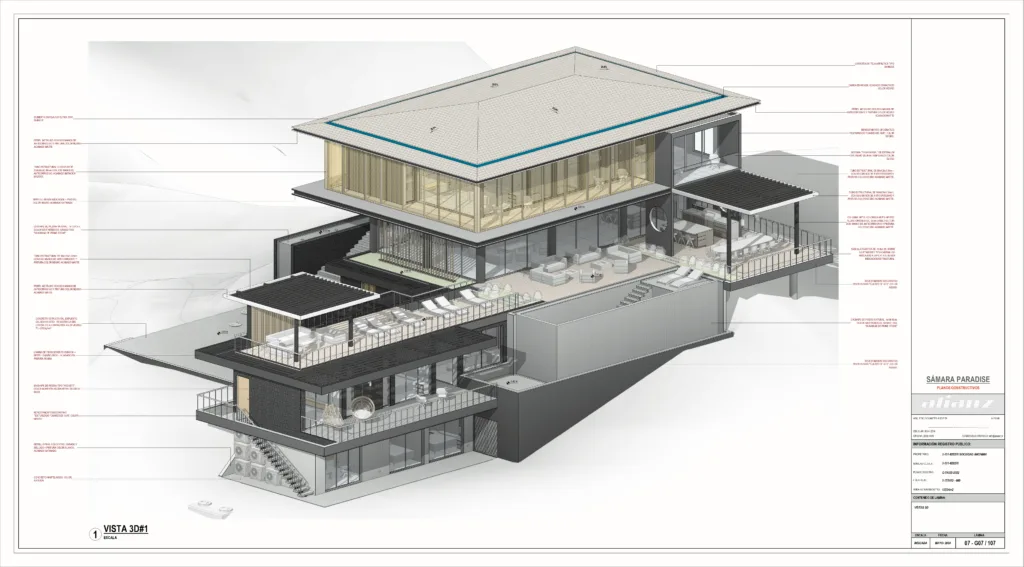 The design is transferred to a platform of construction plans and details to generate an interactive model where the structure of the project and its electromechanical details can be resolved.